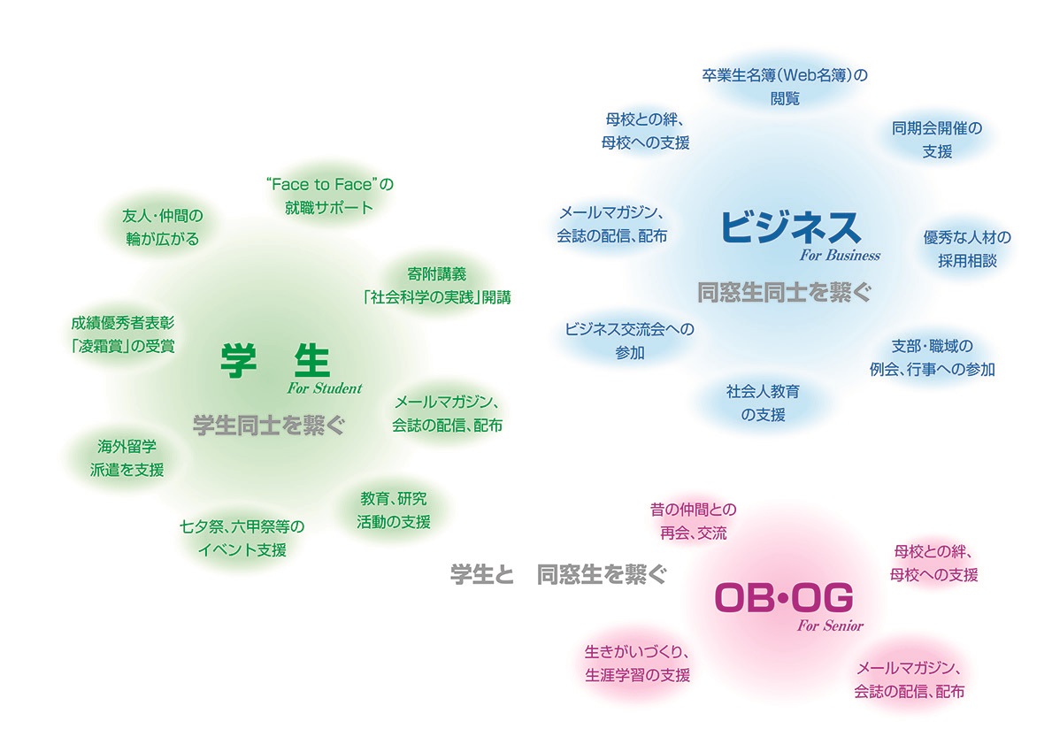 凌霜会は神戸大学学友17万人のOB・OGネットワークを活用して、あなたの人生をサポートしていきます。